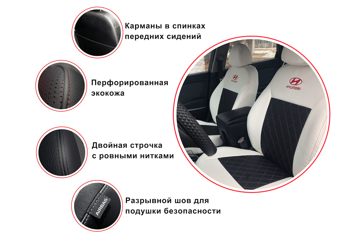После установки, функционал автомобиля полностью сохраняется. Чехлы не мешают срабатыванию подушек безопасности.
