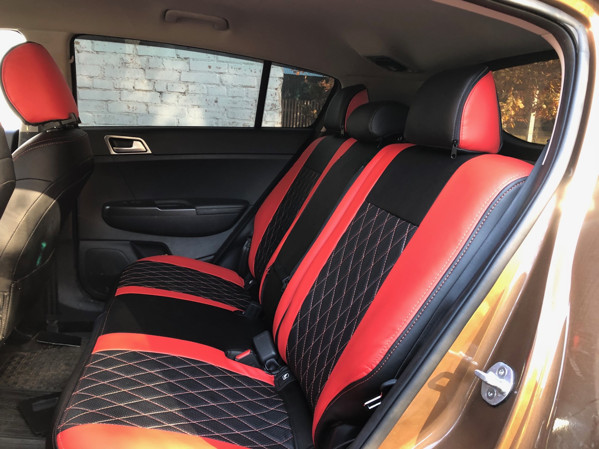 Установка чехлов производится с демонтажем всех сидений, что позволяет смонтировать чехлы сняв защитный пластик и закрепить чехлы на сто % качественно, что бы они не слезли и не сморщились через время.