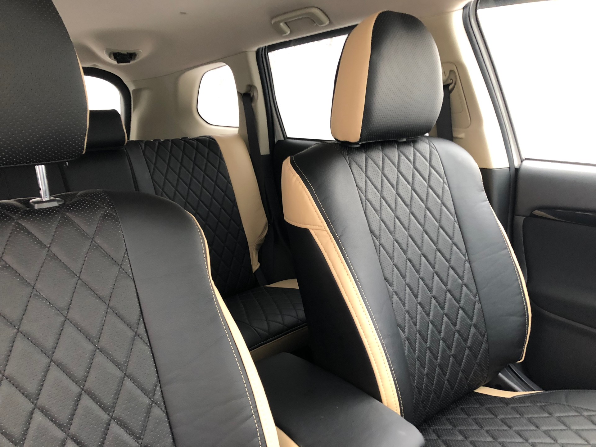 Установка чехлов производится с демонтажем всех сидений, что позволяет смонтировать чехлы сняв защитный пластик и закрепить чехлы на 100 % качественно, что бы они не слезли и не сморщились через время.